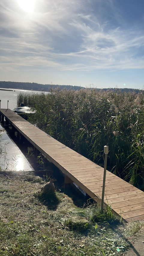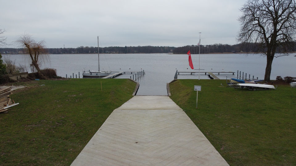 Die großzügige Bootsbucht bietet in Kombination mit der Steganlage einen tollen Zugang zum Gewässer und einen geschützten Platz für mehrere Boote.