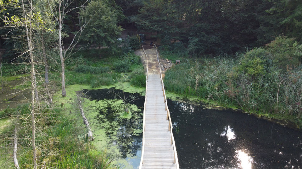 Im Jahr 2023 entstand auf dem Gelände des Tierparks Kunsterspring eine neue Steganlage samt sechseckiger Aussichtsplattform. Das sumpfige Areal entlang der Kunster wurde infolge von Biberaktivität geflutet, wodurch nun zahlreiche Tiere und Pflanzen in dem Biotop anzutreffen sind. Bei der Planung und Umsetzung der Anlage bestand die Herausforderung verschiedene Aspekte des Natur- und Artenschutz mit den Ansprüchen an die Sicherheit des Bauwerks für den Besucherverkehr zu kombinieren. Durch die Verwendung von Robinienholz und einem Geländer aus geschälten Rundhölzern soll sich die Steganlage optisch unauffällig in die Umgebung einfügen und gleichzeitig eine hohe Standzeit gewährleisten.