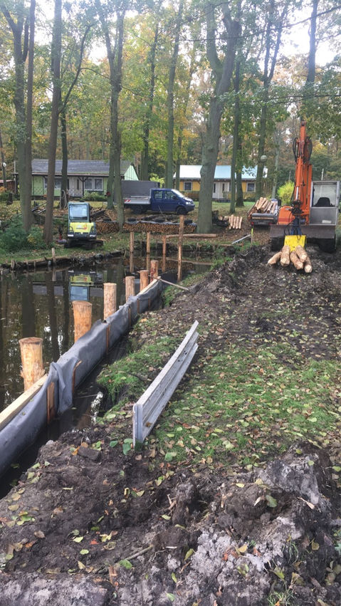 Unser Unternehmen übernahm die Entwässerung sowie die fachgerechte Entsorgung des kontaminierten Schlamms. Zudem erhielt das Teichumfeld eine neue Zaunanlage mit Eingangstor und Rankelement sowie diverse Neupflanzungen.